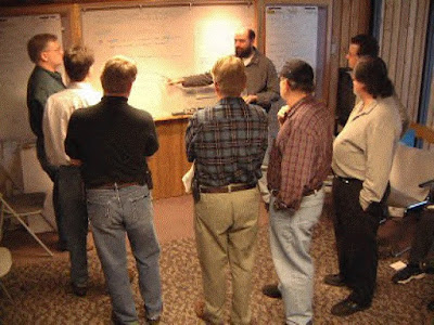 Between 1997-2000, aside from co-leading TCPG, Mike had a semi-recurring consulting 'gig' at Motorola in Arlington Heights, where we got to interact even more frequently after I moved there from Motorola's Northbrook campus (in May of '98). We also got to chat more frequently with Ron Crocker then too (my workspace was practically right next to Ron's for much of 2000-2004). I mention this because Ron Crocker created what may have been the very first "scaled" Agile method (Grizzly, eXtreme Programming at scale) during that time.